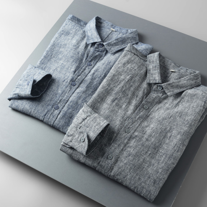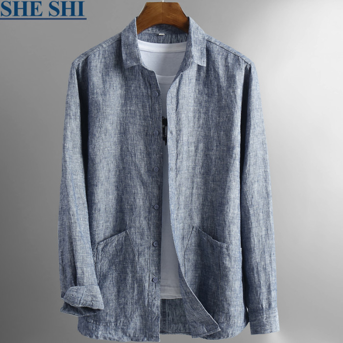 春秋款開衫男亞麻襯衫長袖非棉麻寬松純色休閒襯衣打底衫上衣外套