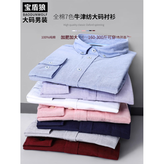 秋冬款加肥加大碼男式純棉長袖襯衫肥佬寬松休閒牛津紡襯衣打底衫