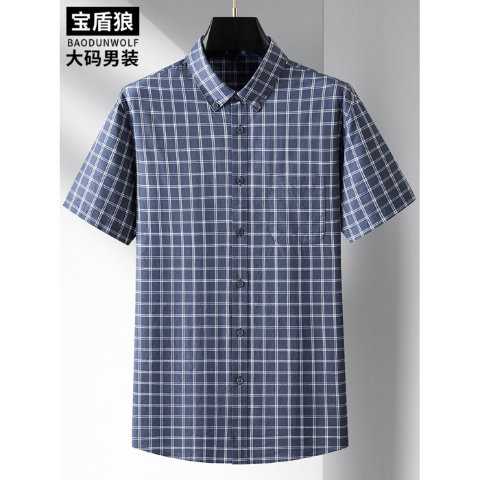 大胖子300斤純棉格子短袖襯衫男士加肥特大碼夏季半袖襯衣打底衫