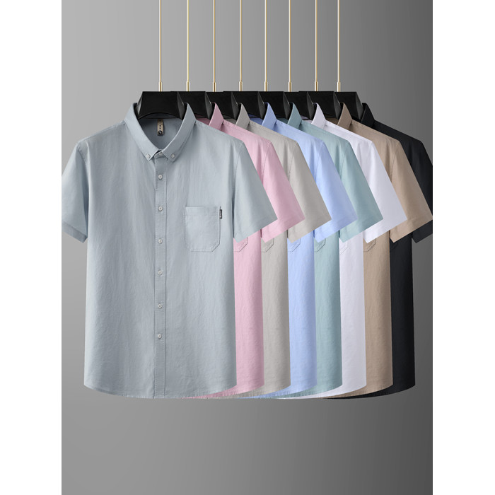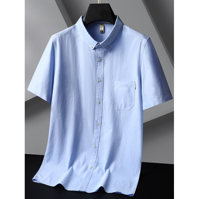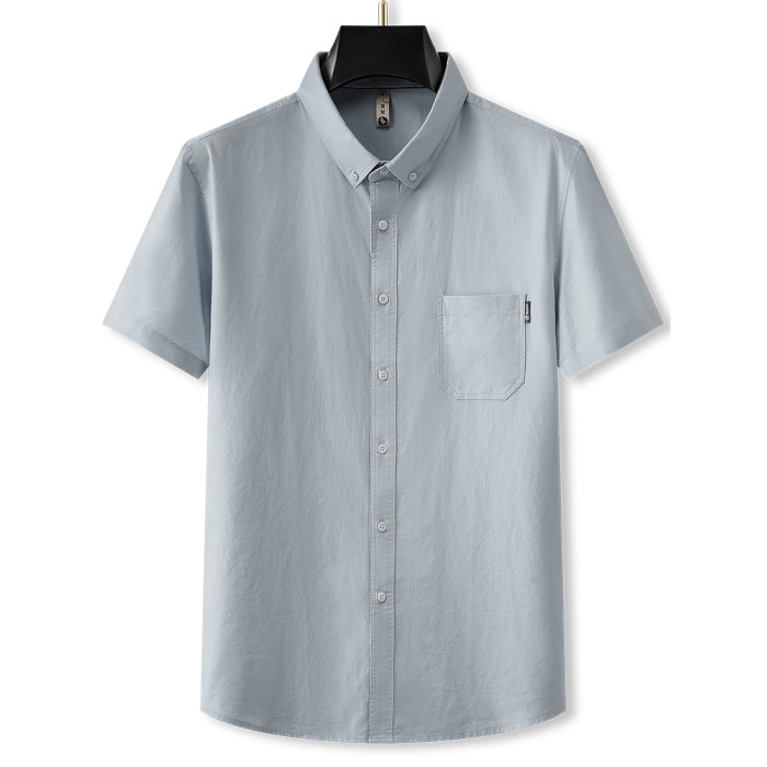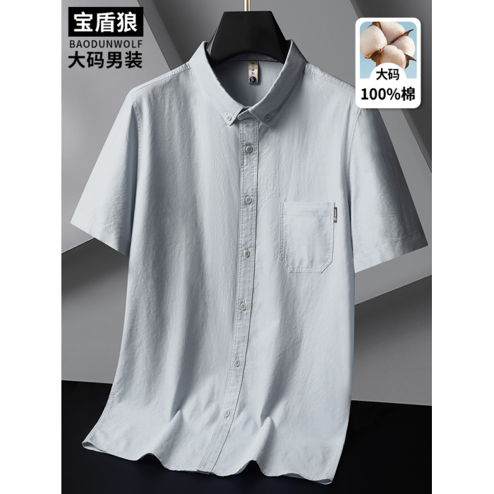 牛津紡純棉短袖襯衫男加大碼復古打底衫夏季薄款肥佬休閒半袖襯衣