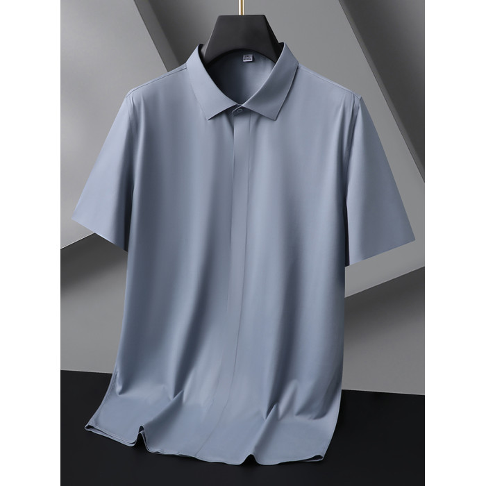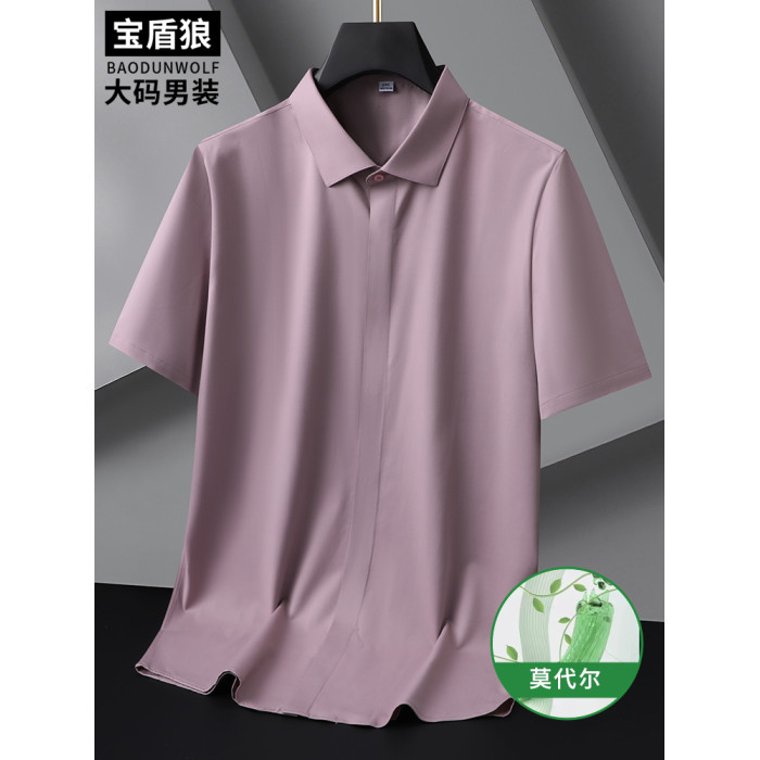 簡約百搭夏裝短袖襯衣男大碼打底衫肥佬大肚子休閒半袖莫代爾襯衫