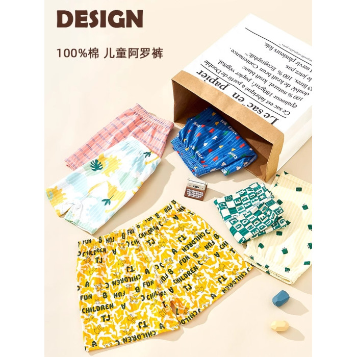男童內褲純棉寬松居家短阿羅褲初中學生100%棉四角褲卡通不夾屁屁