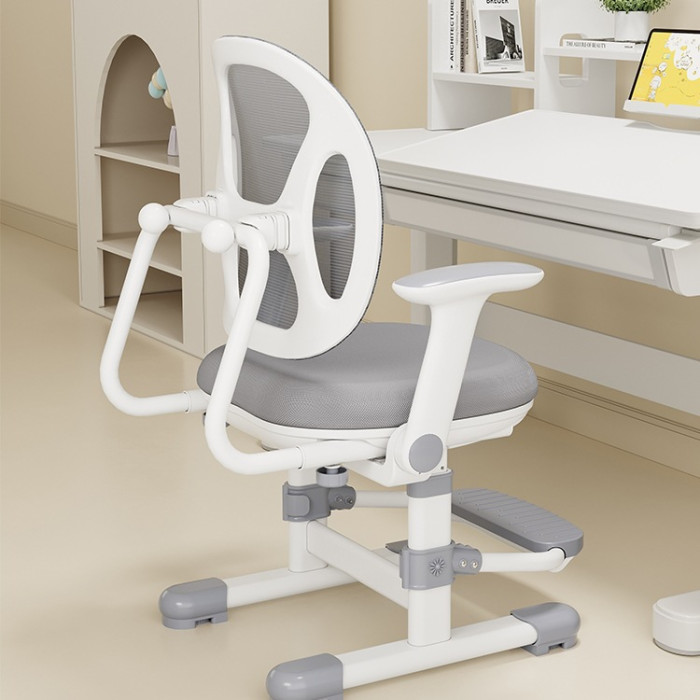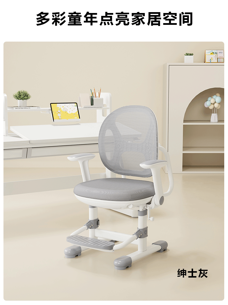 雙背椅-加高款-灰/固定腳踏+前後追背+手搖升降