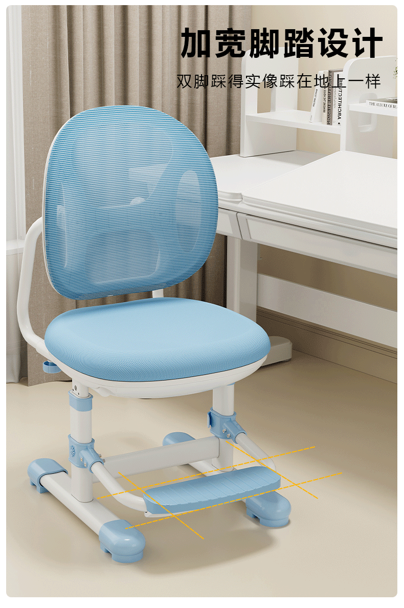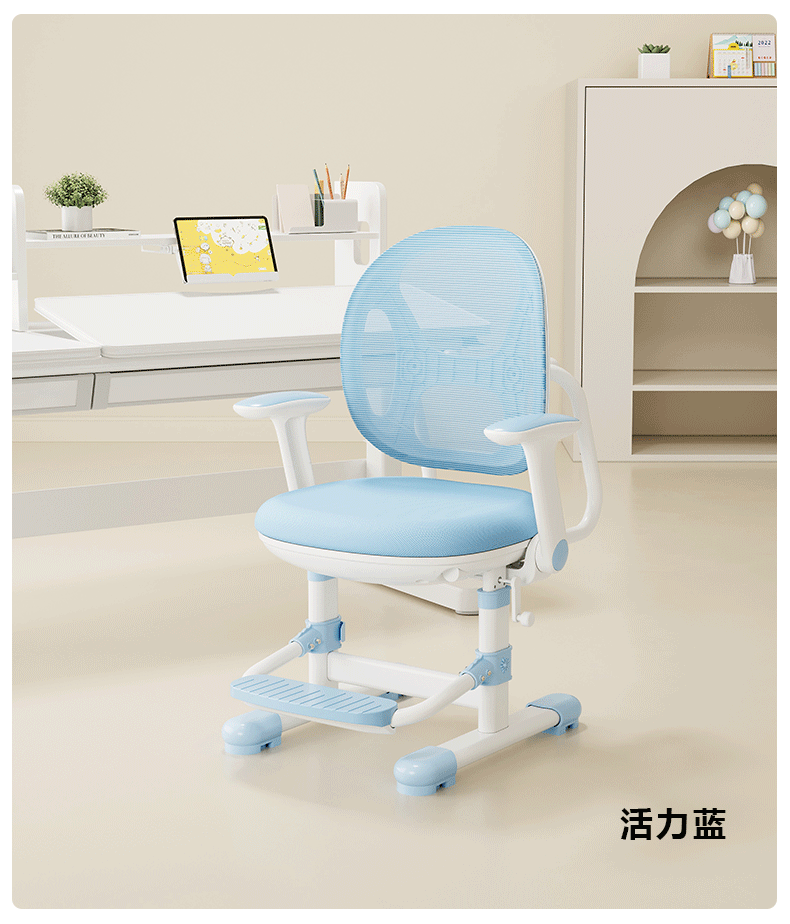 雙背椅-加高款-藍/固定腳踏+前後追背+手搖升降