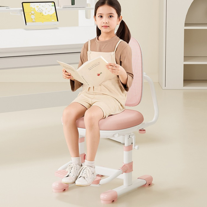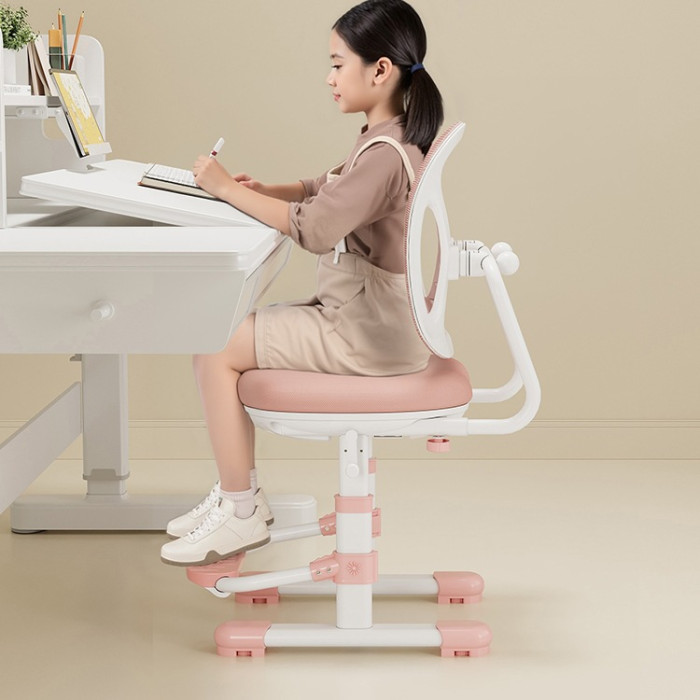 雙背椅-加高款-粉/固定腳踏+前後追背+手搖升降