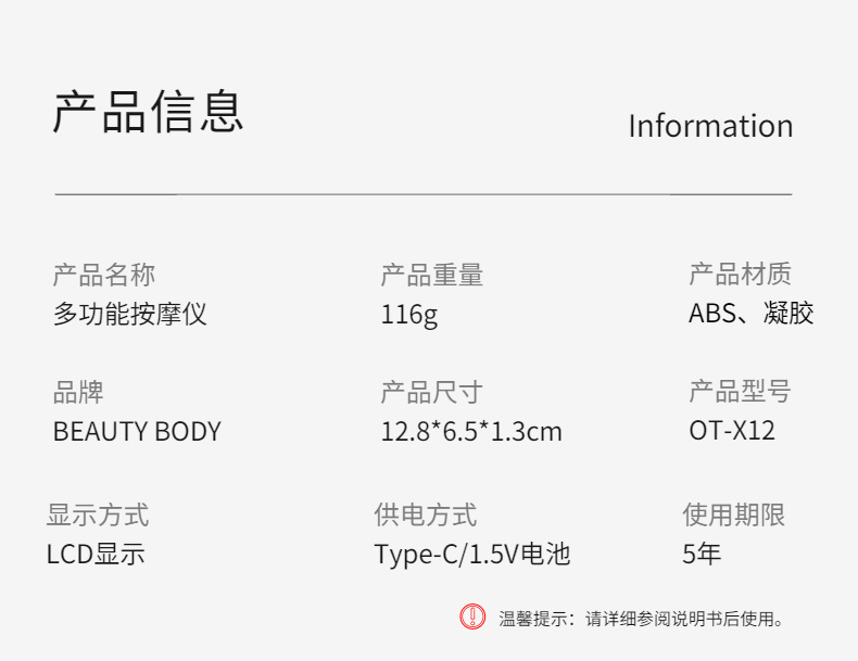 功能 | 針灸、鎚擊、按摩、火罐、推拿、刮痧、瘦身、免疫 |