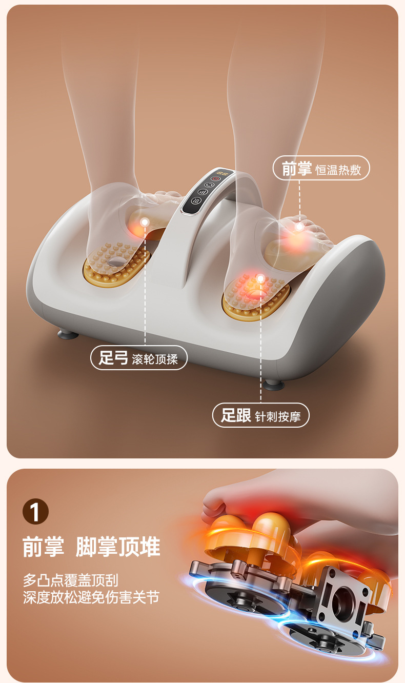 新款全自動足底按摩器揉捏腿部按摩熱敷塑形足療機充電款