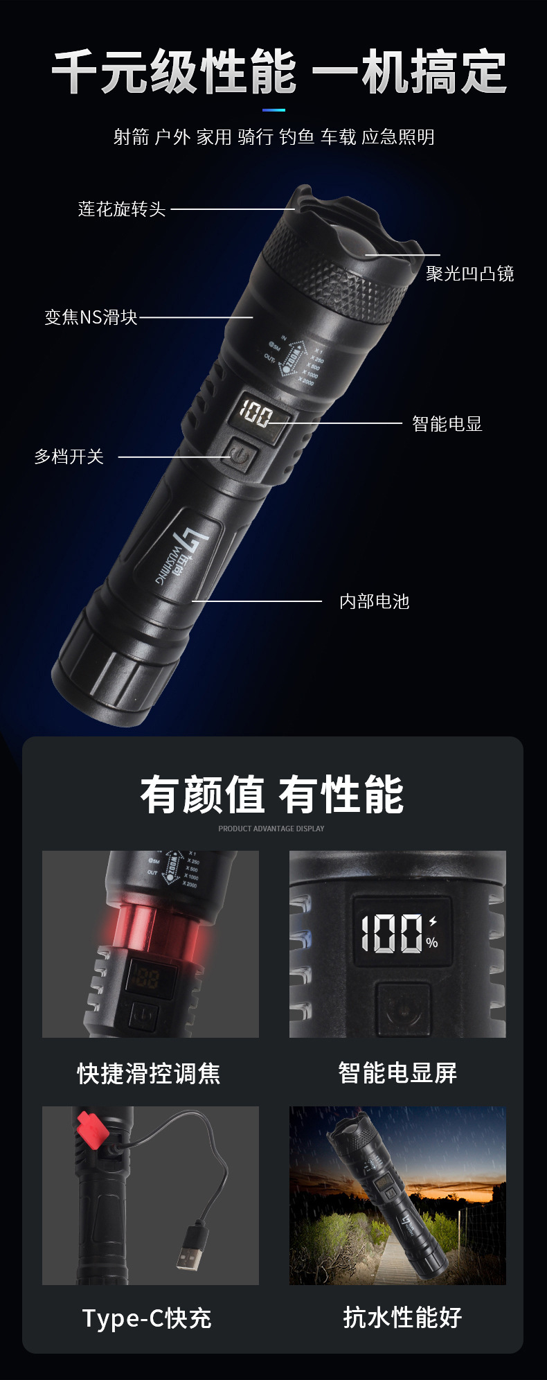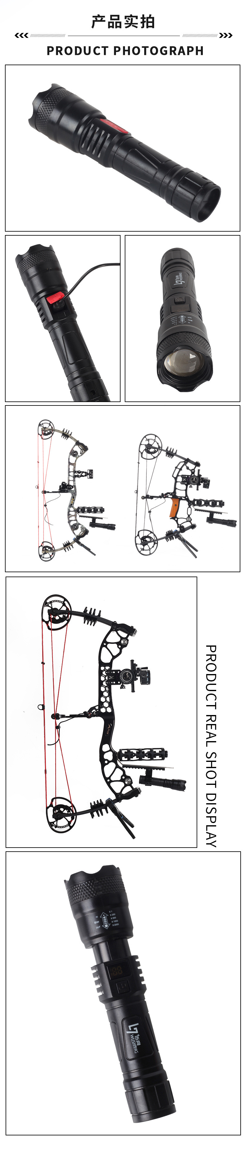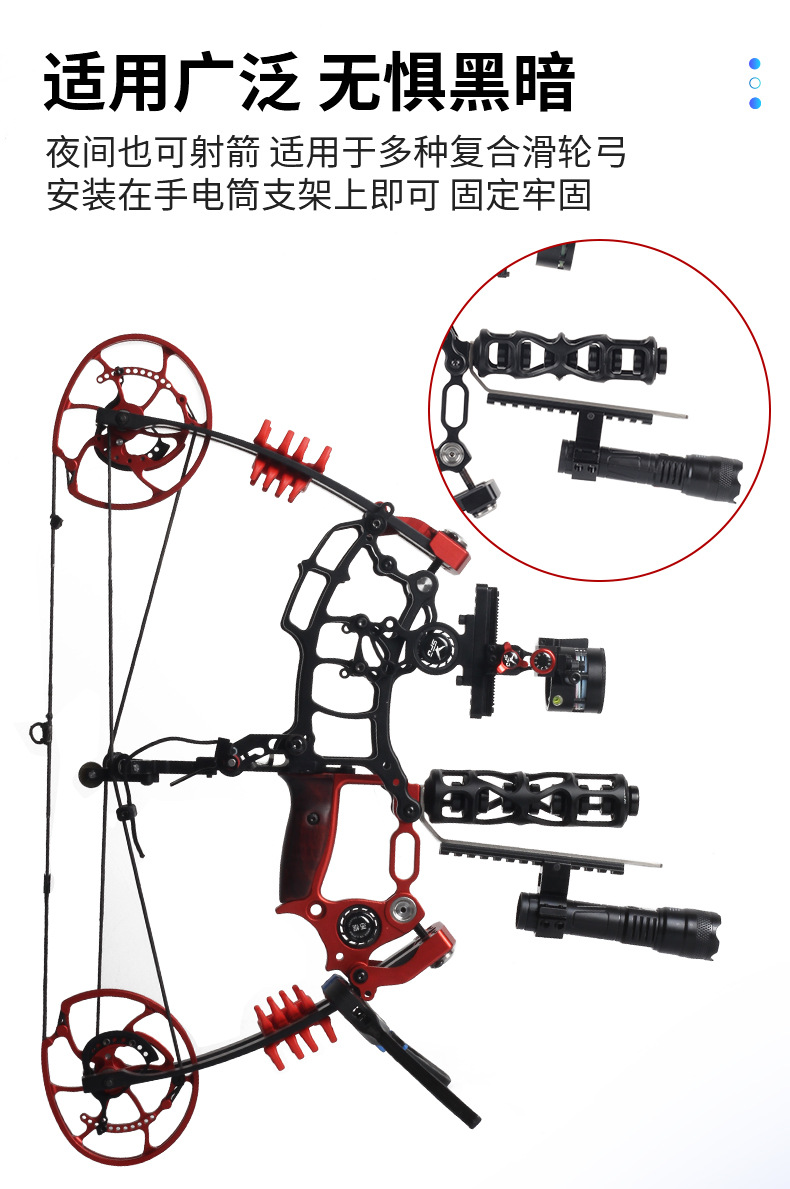 弓箭手電筒夜間射箭配件強光手電筒可裝雷射瞄準全息瞄手電筒支架