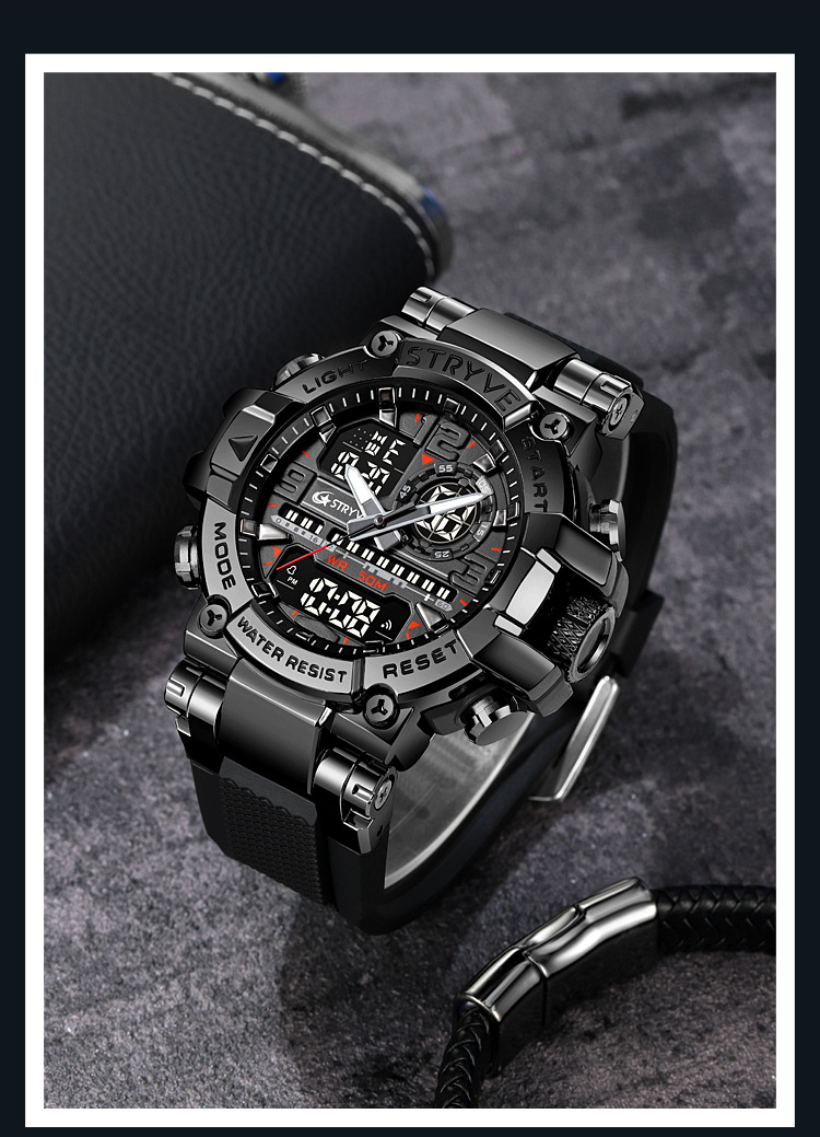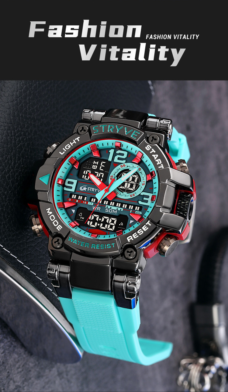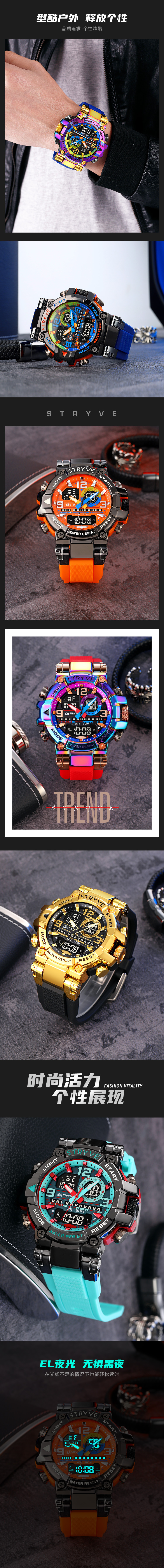 STRYVE運動炫彩夜光電子防水腕表多功能學生手錶8025