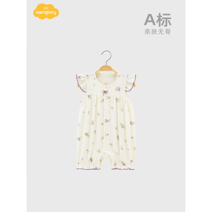 Aengbay嬰兒夏季連體衣洋氣女寶外出短袖哈衣爬服新生兒衣服夏裝