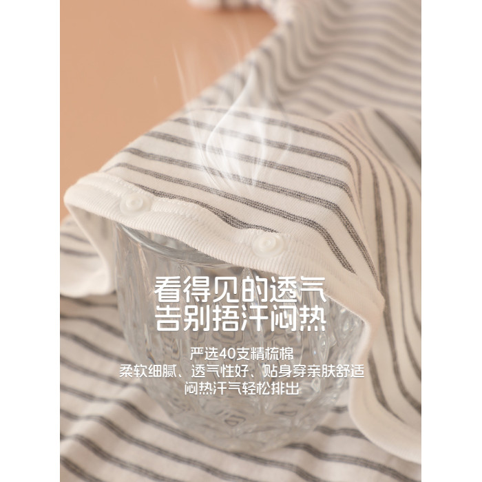 三色條紋短袖哈衣 無網眼(肩釦款)