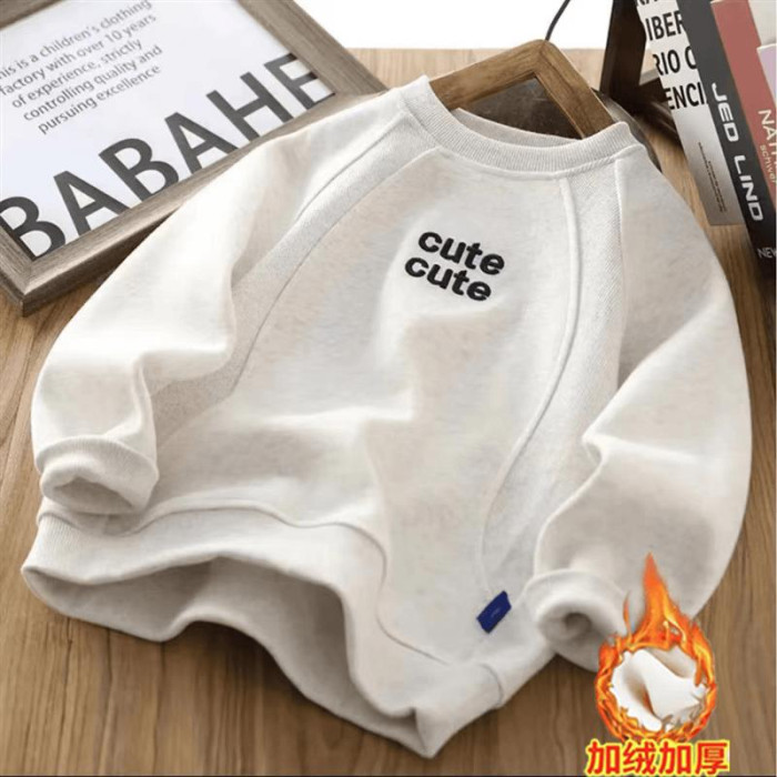 【加絨/不加絨】男童秋裝衛衣2024新款上衣春秋男孩圓領衫洋氣寬