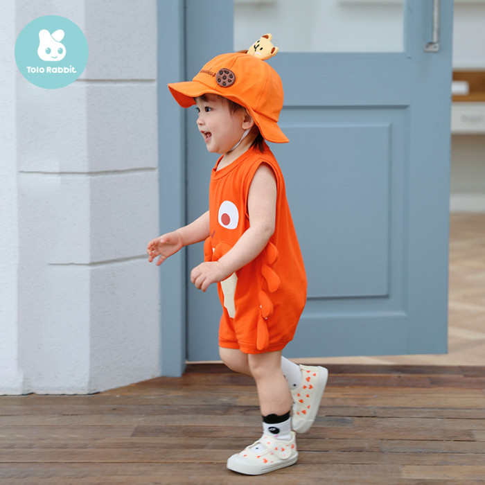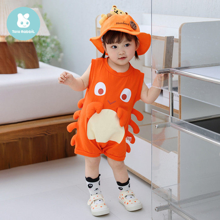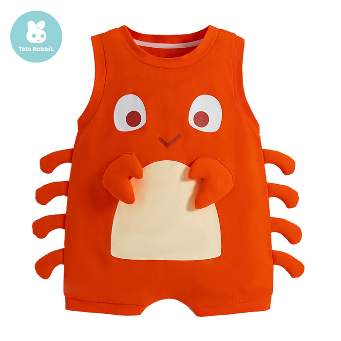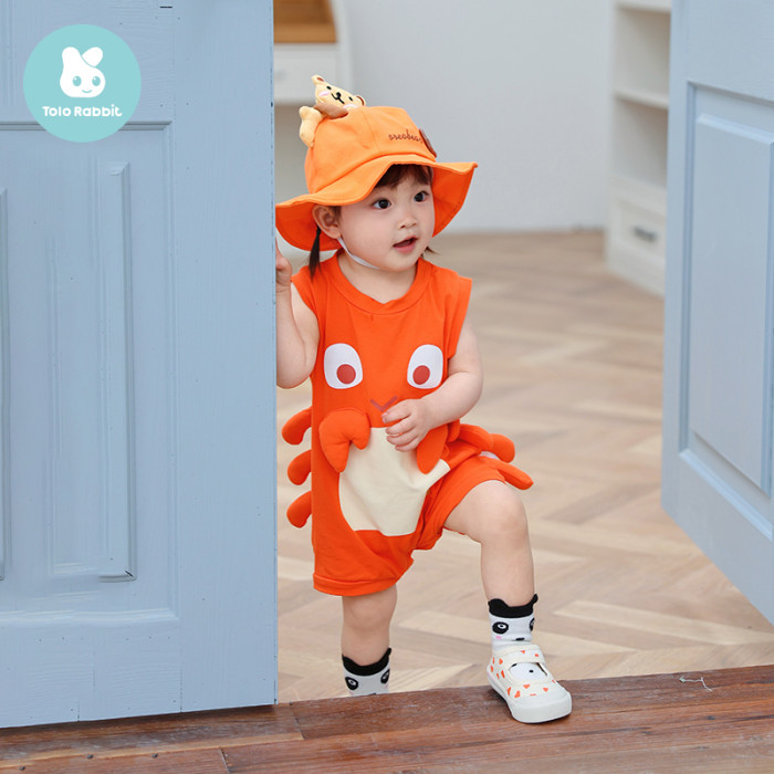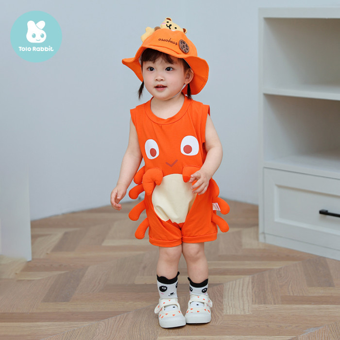 2025新款嬰兒衣服夏季可愛寶寶螃蟹無袖哈衣薄款連體衣純棉夏裝萌