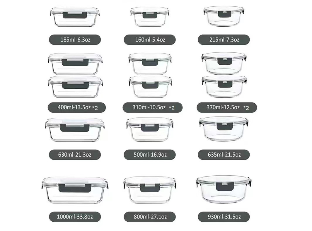 可拆卸式圓形玻璃保鮮盒食品級冰箱專用密封碗帶蓋微波爐加熱飯盒