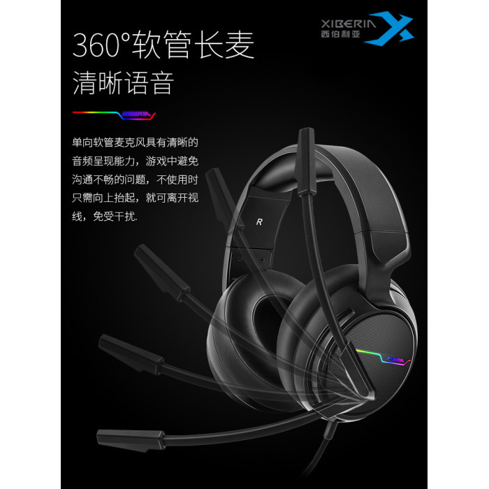 西伯利亞V20遊戯耳機頭戴式耳機線控手機電腦通用發光耳機帶麥