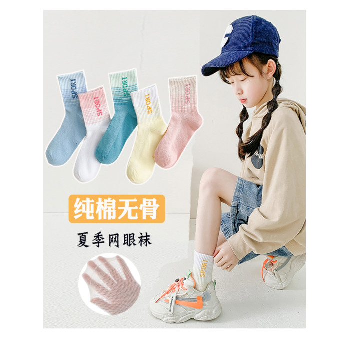女童襪子夏季純棉薄款兒童中筒襪小女孩中大童無骨夏天字母網眼襪