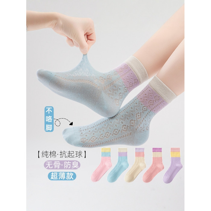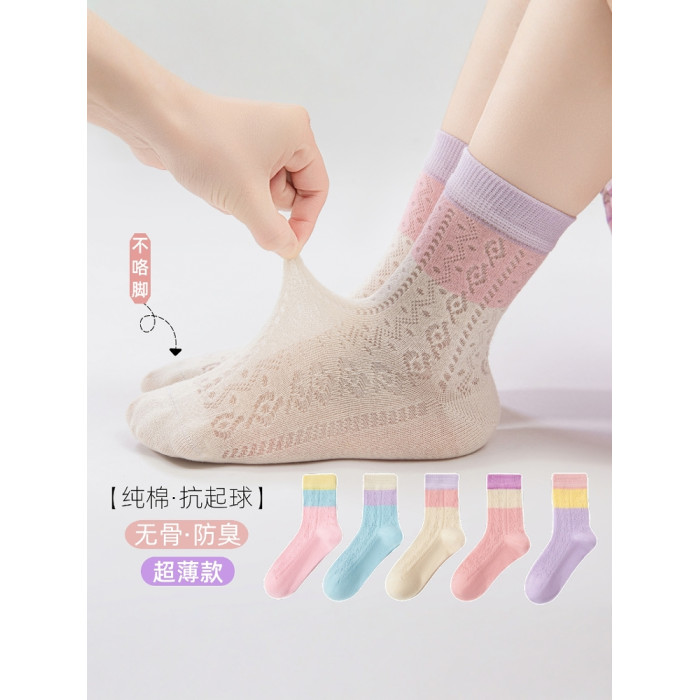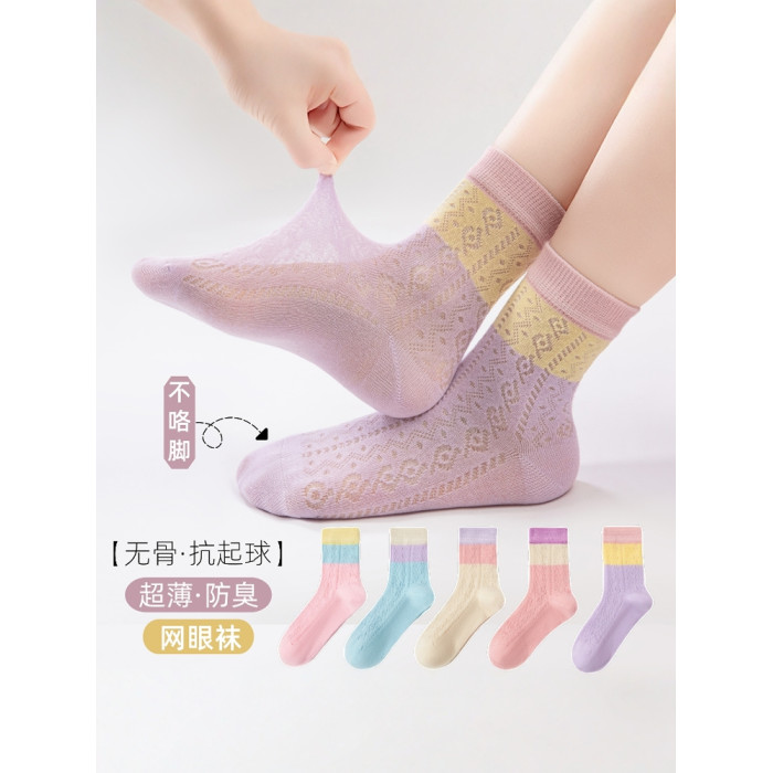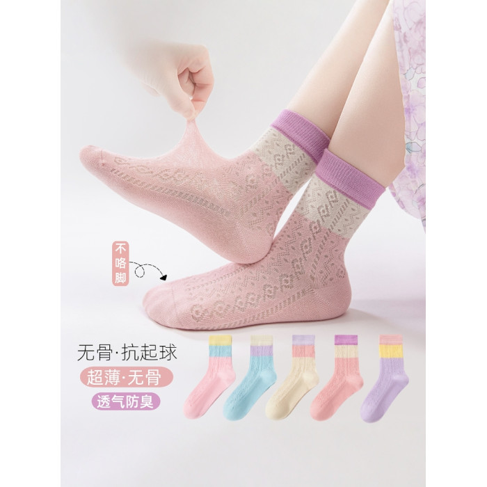 多巴胺女童襪子夏季超薄款無骨防臭女寶寶夏天網眼兒童純棉中大童