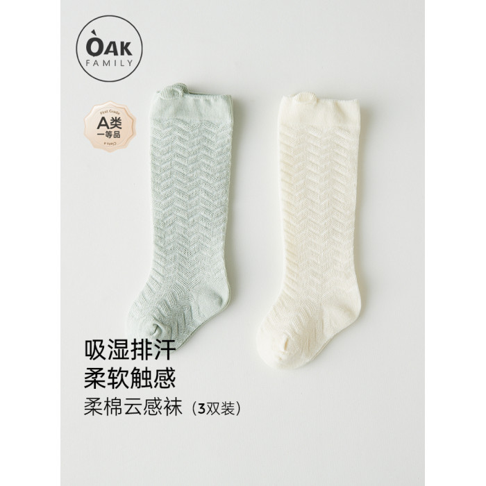 Oak Family鏤空防蚊襪嬰兒夏季純棉薄款長筒襪男女寶寶襪子 2雙裝