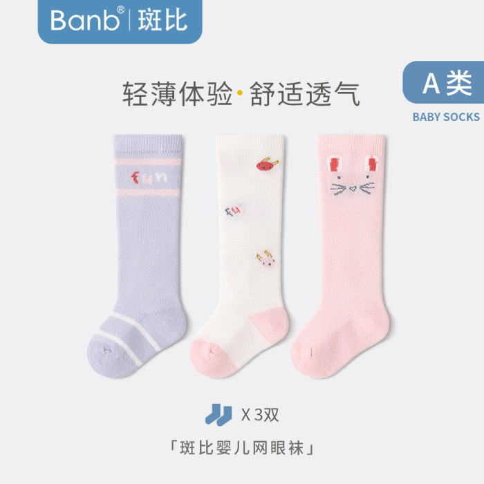 斑比嬰兒襪子夏季薄款新生兒無骨過膝防蚊襪網眼透氣春秋寶寶襪子