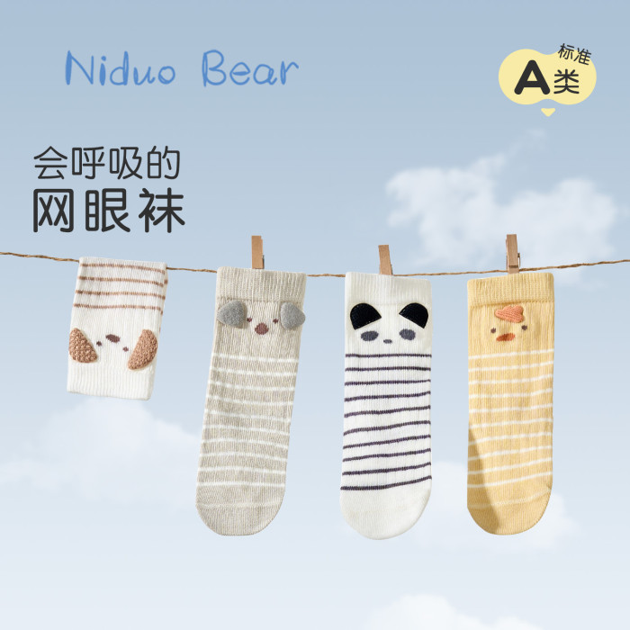 尼多熊2025寶寶襪子夏季薄款棉襪無骨不勒腳嬰兒中筒襪透氣網眼襪
