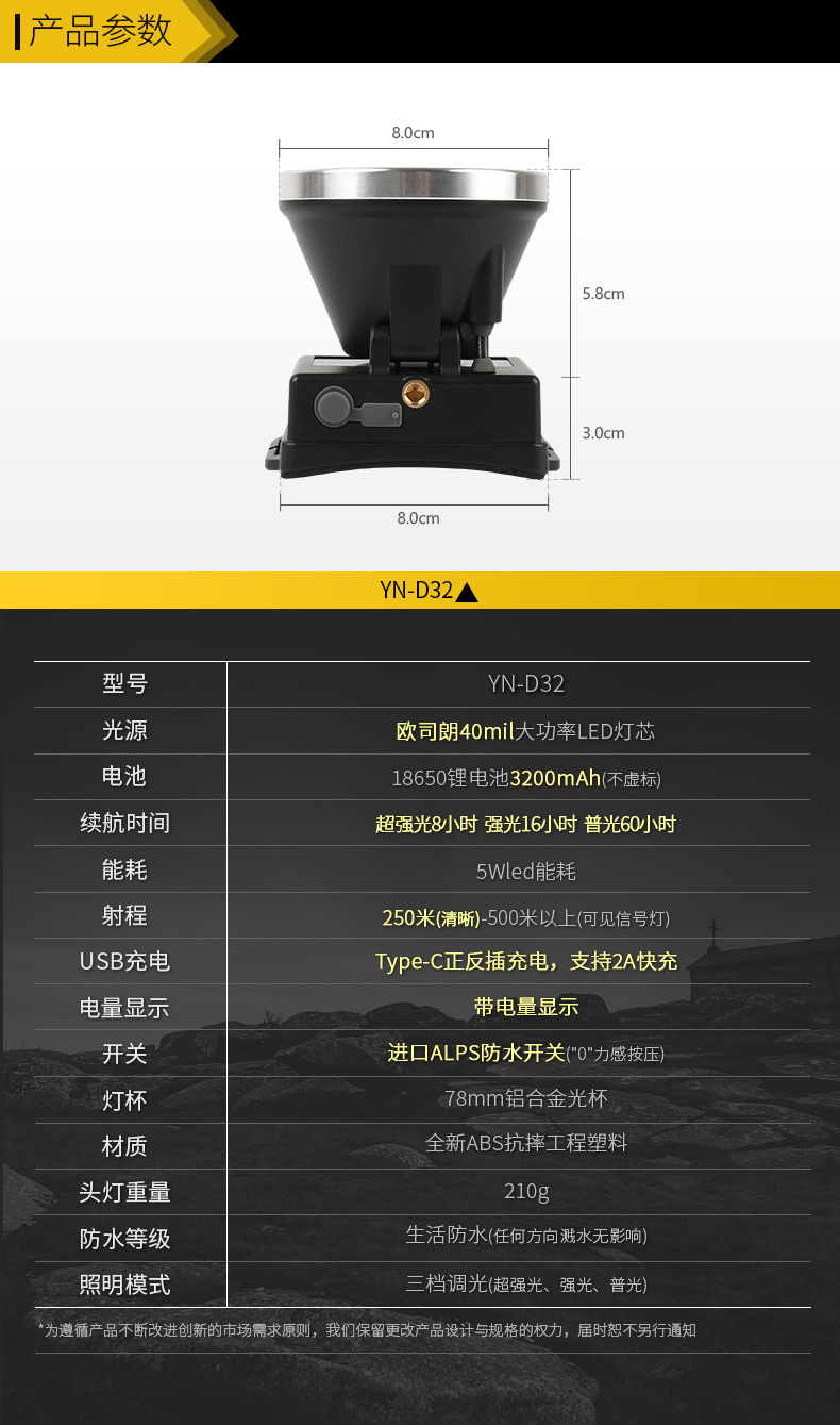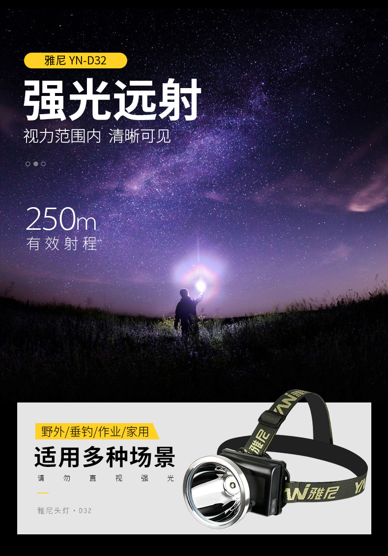 雅尼D32頭燈強光充電超亮頭戴式手電筒鋰電礦燈超長續航戶外釣魚