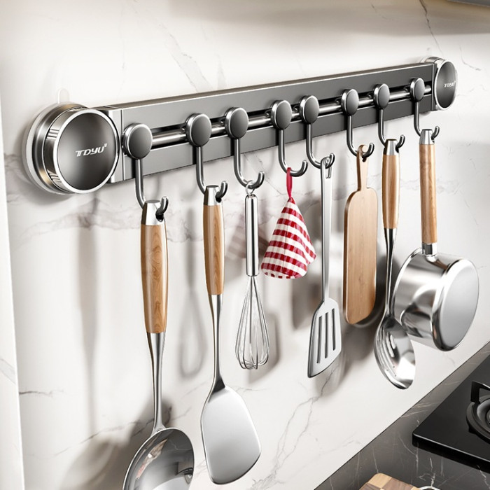 吸盤廚房掛鉤廚房置物架免打孔掛桿鍋鏟勺子一排掛架壁掛式收納架