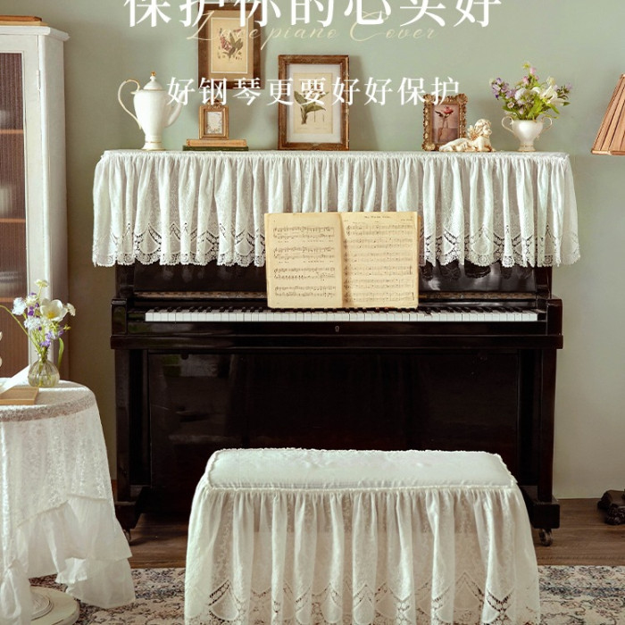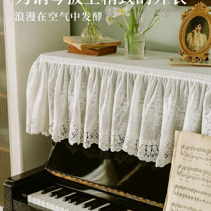 浪漫巴黎鋼琴罩暖白色蕾絲半罩法式防塵罩電子琴古箏蓋布蓋巾