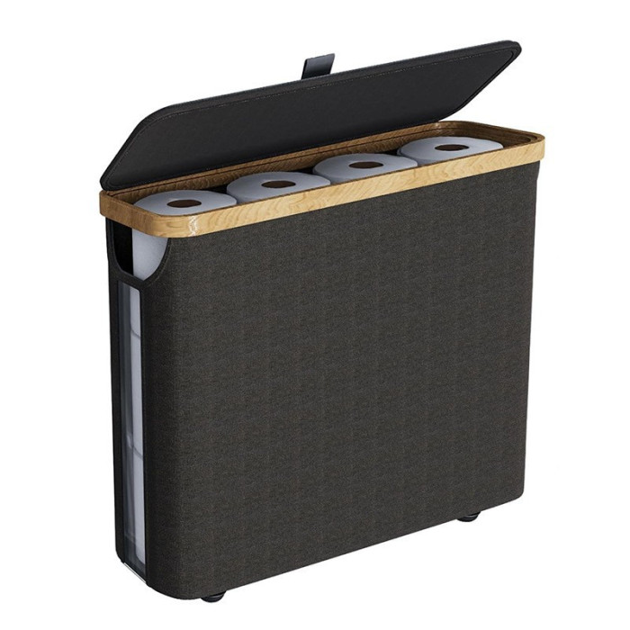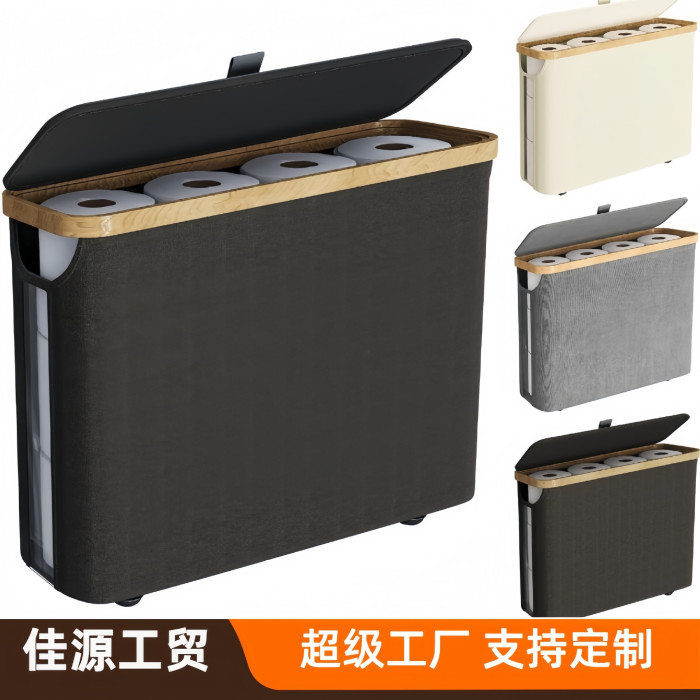 竹製布藝衛生間紙巾收納筐可折曡透明帶蓋卷紙收納簍襍物籃牛津布