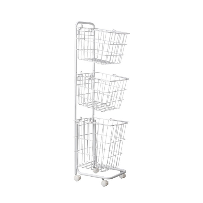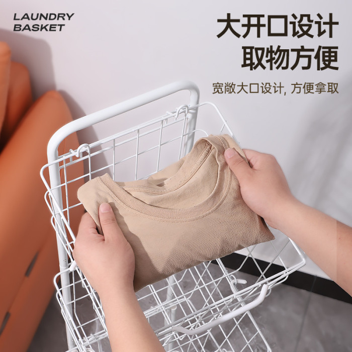 金屬鐵絲網白色家用浴室髒衣籃帶輪多層收納筐置物