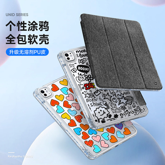 適用iPadPro11帶筆槽平板保護套iPadAir13三折彩繪保護殼