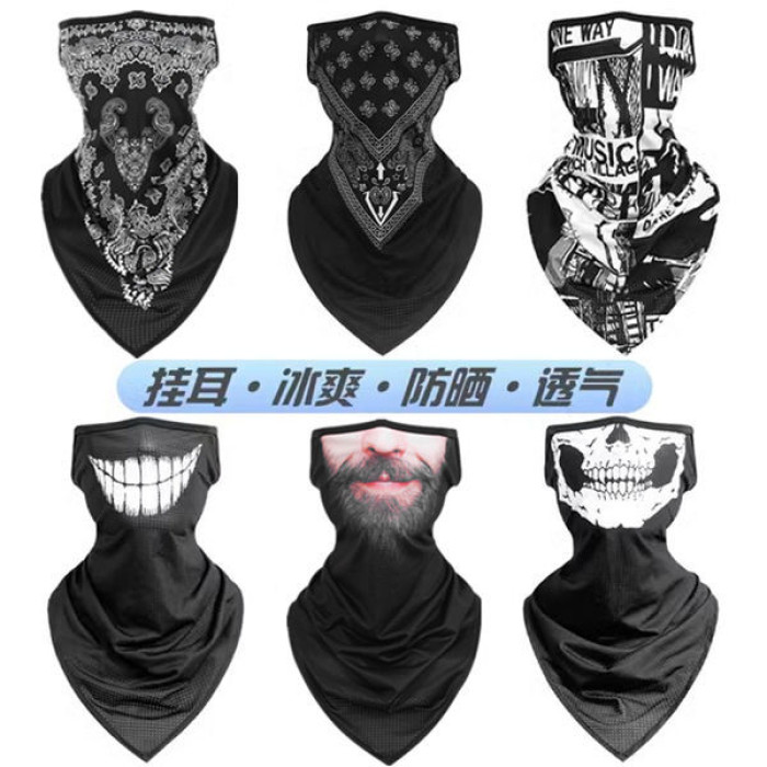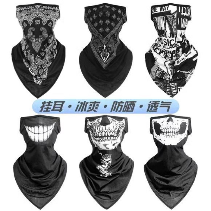 防曬面罩騎行口罩騎手面巾冰絲骷髏面罩脖套夏季釣魚掛耳頭巾男女