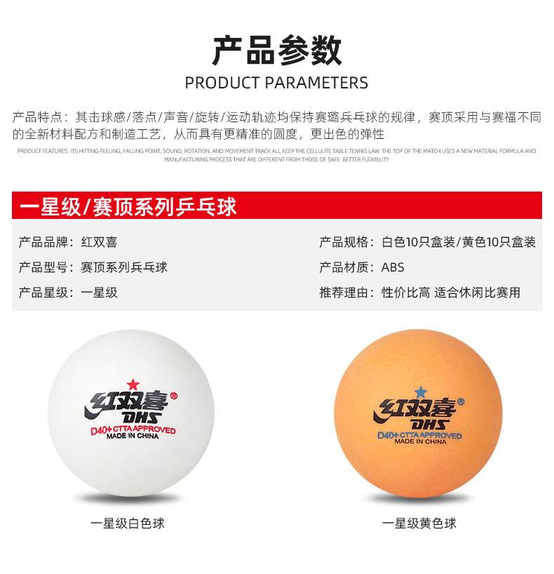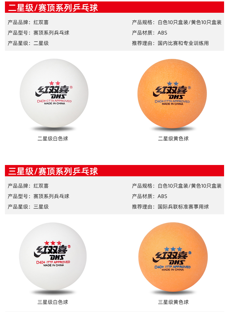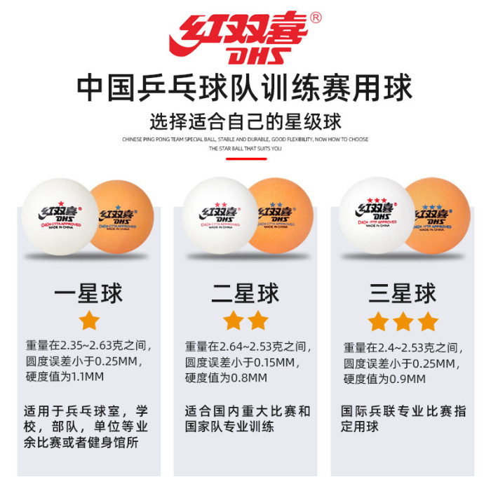紅雙喜乒乓球3星一星二星級比賽球兵乓球新訓練球耐打球黃色白色