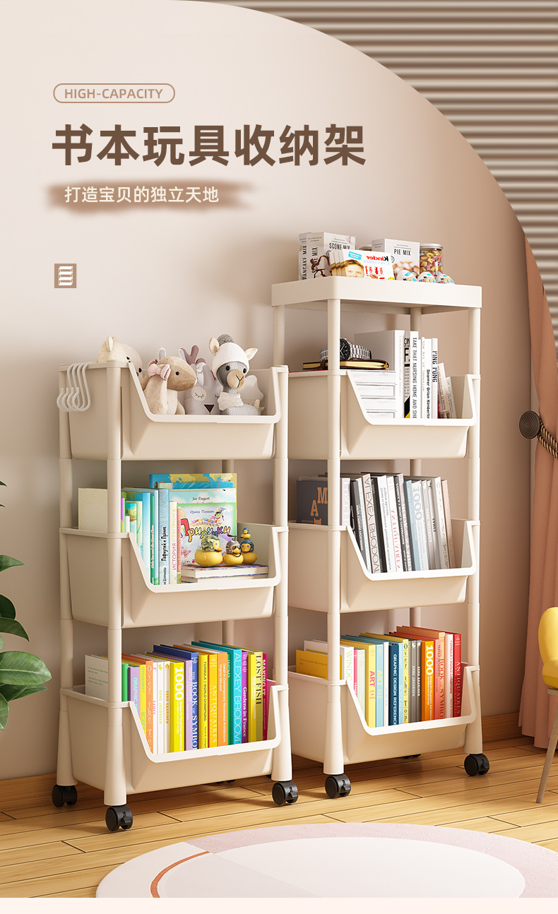 可移動書架置物架兒童玩具收納架多層家用小推車帶輪落地簡易書櫃