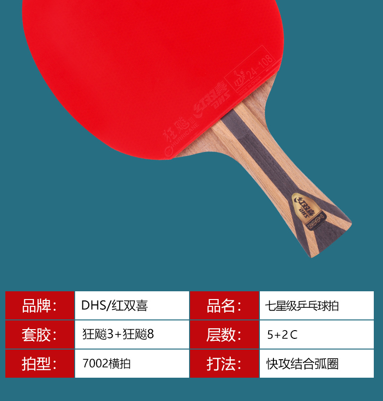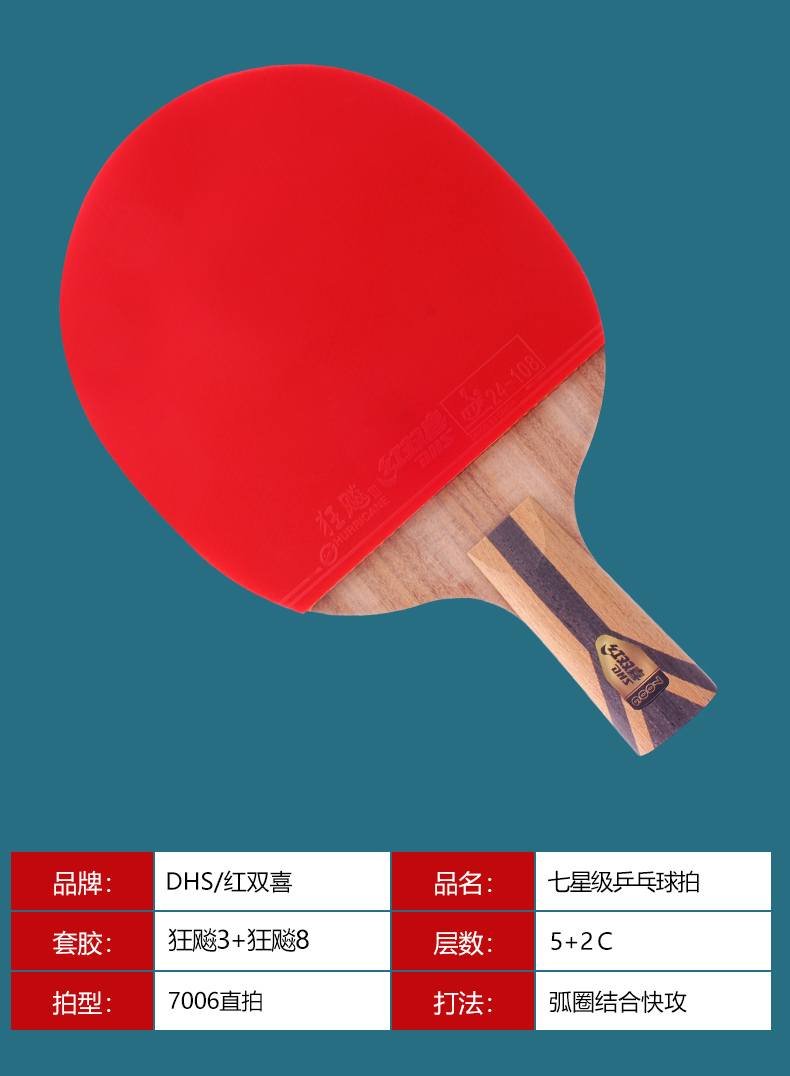 紅雙喜H7006直拍1衹