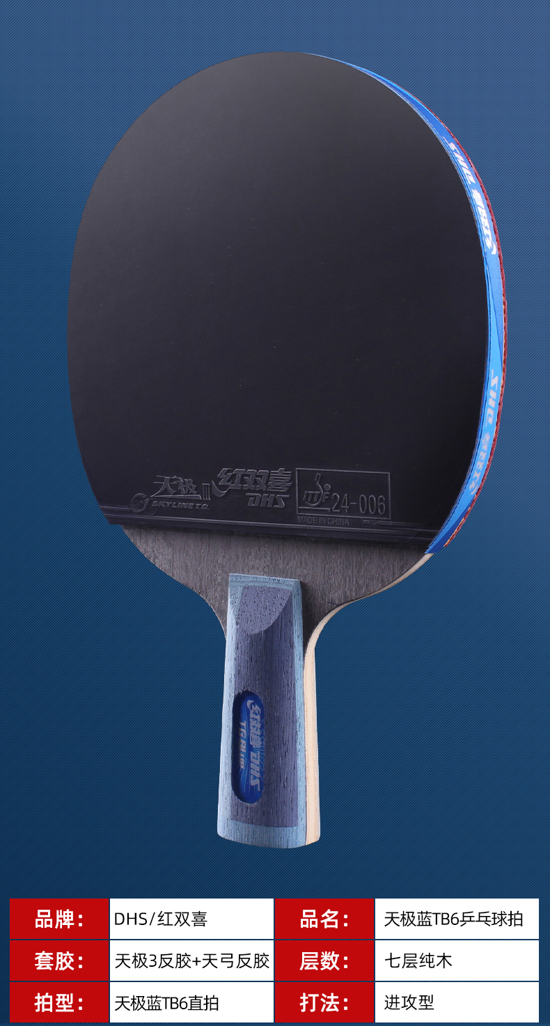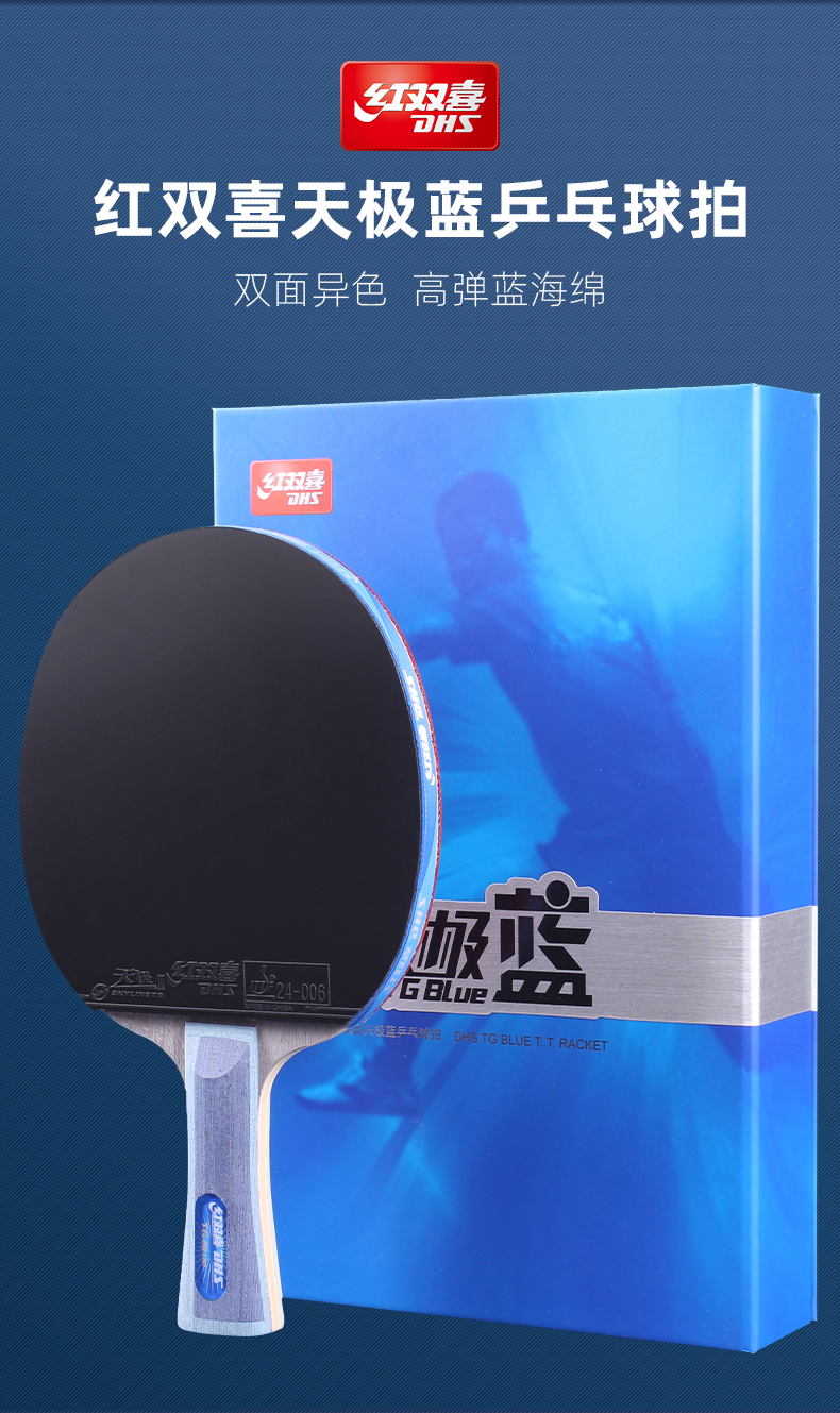 紅雙喜乒乓球拍單拍天極藍專業級藍海綿直拍橫拍兵乓球成品拍1衹