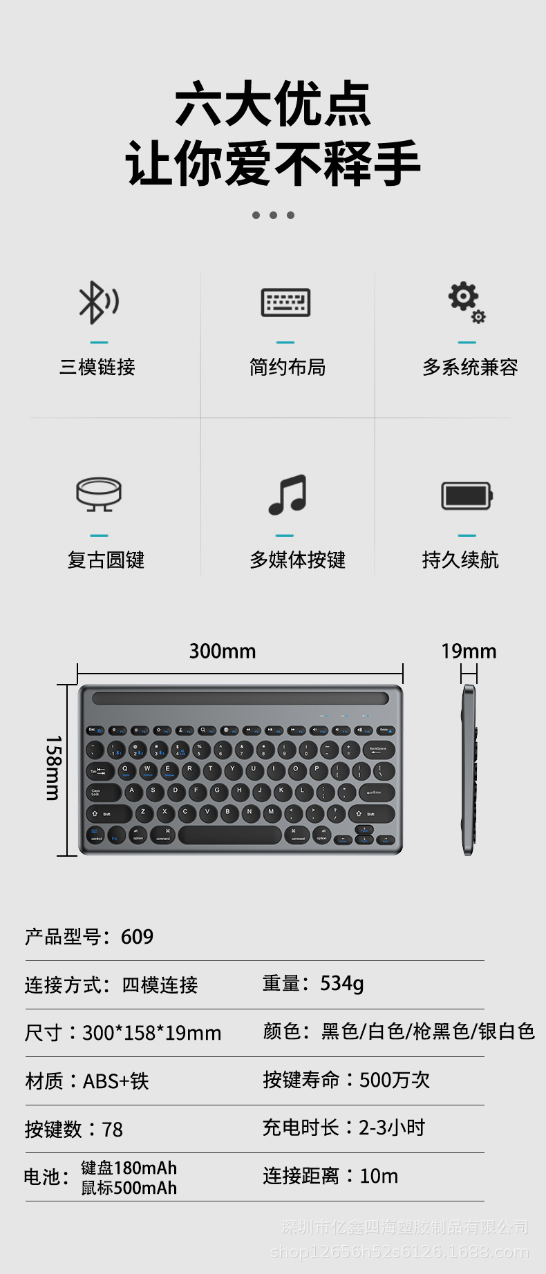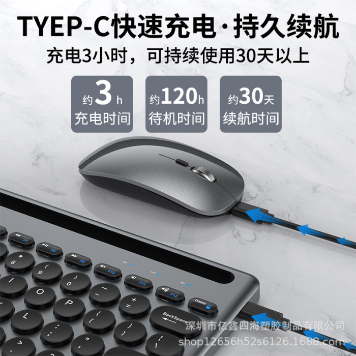 億鑫卡槽藍牙無線雙模鍵盤滑鼠套Type-C充電輕音手機平板電腦兼容