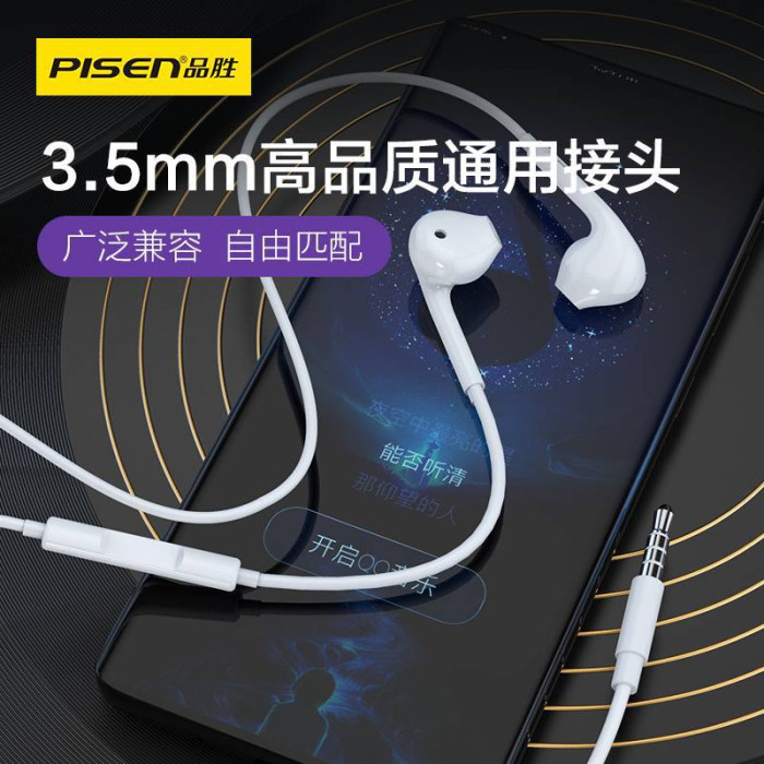 品勝耳機有線3.5mm圓口線控帶麥適用於蘋果安卓華爲手機高音質