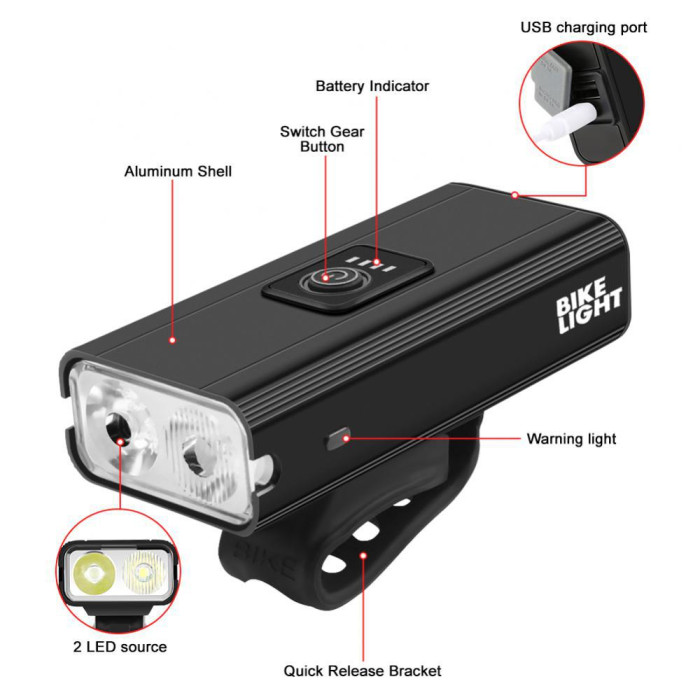 新款雙T6強光遠射帶電顯戶外騎行燈大容量自行車USB充電前燈