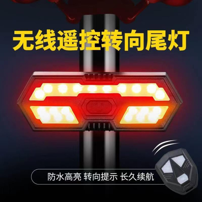 新款自行車刹車遙控轉向燈USB充電高亮40LED帶喇叭夜騎警示後尾燈