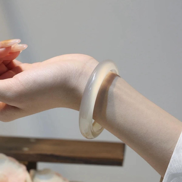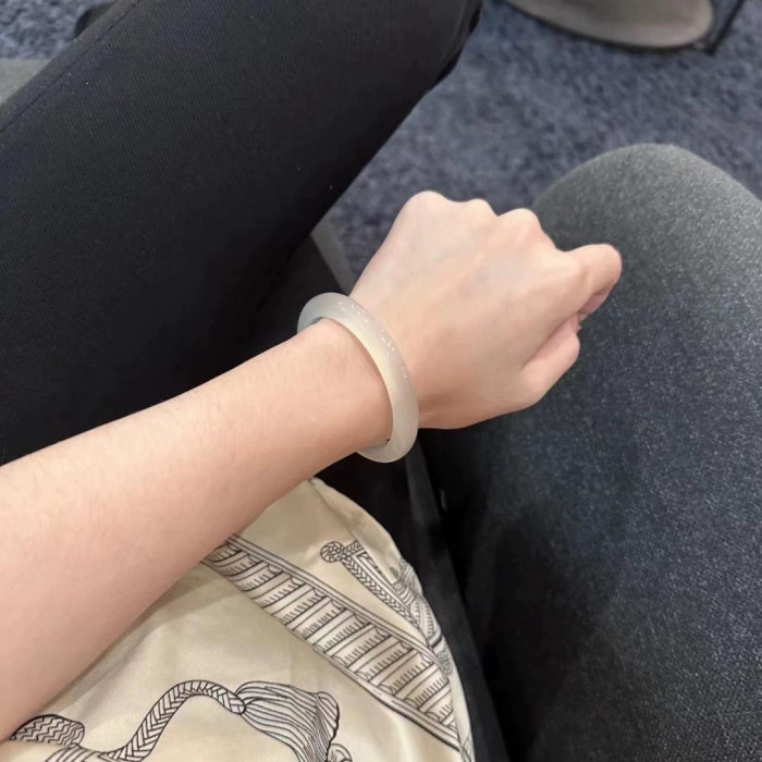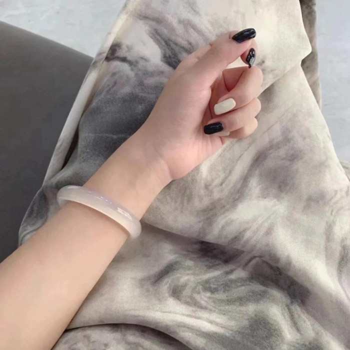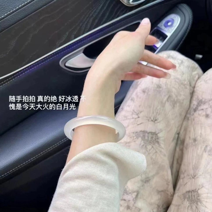 冰種白玉髓手鐲白月光瑪瑙手鐲少女款年輕款荔枝凍瑪瑙手環冰透款