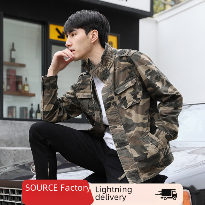 春季男士外套工裝迷彩夾克潮流百搭男裝上衣純棉耐磨衣服