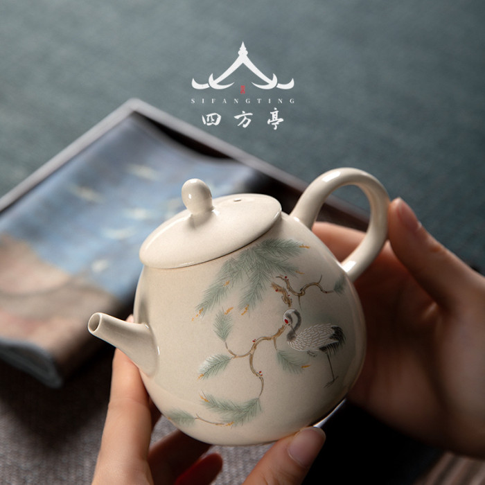 大號復古草木灰茶壺家用單壺陶瓷泡茶壺單個中式功夫茶具泡茶器
