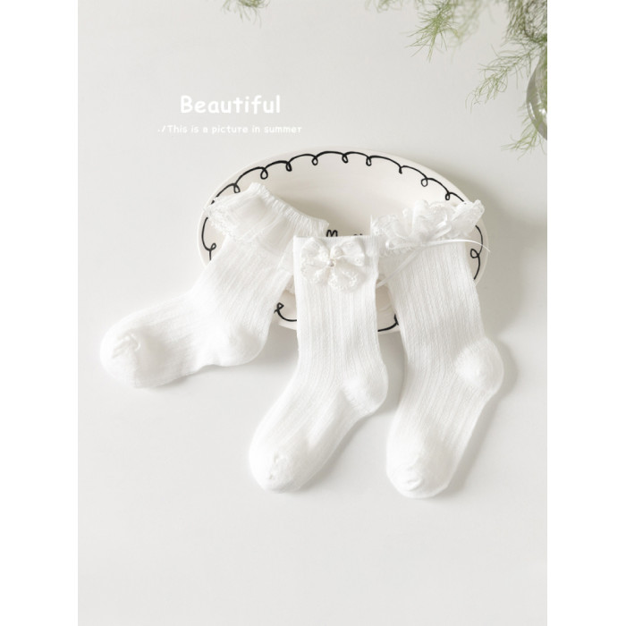 裙擺花邊+珍珠蝴蝶結(2雙裝)