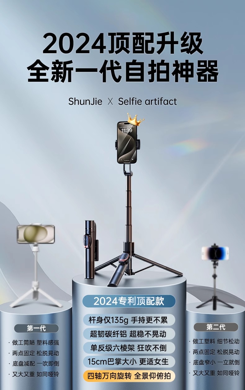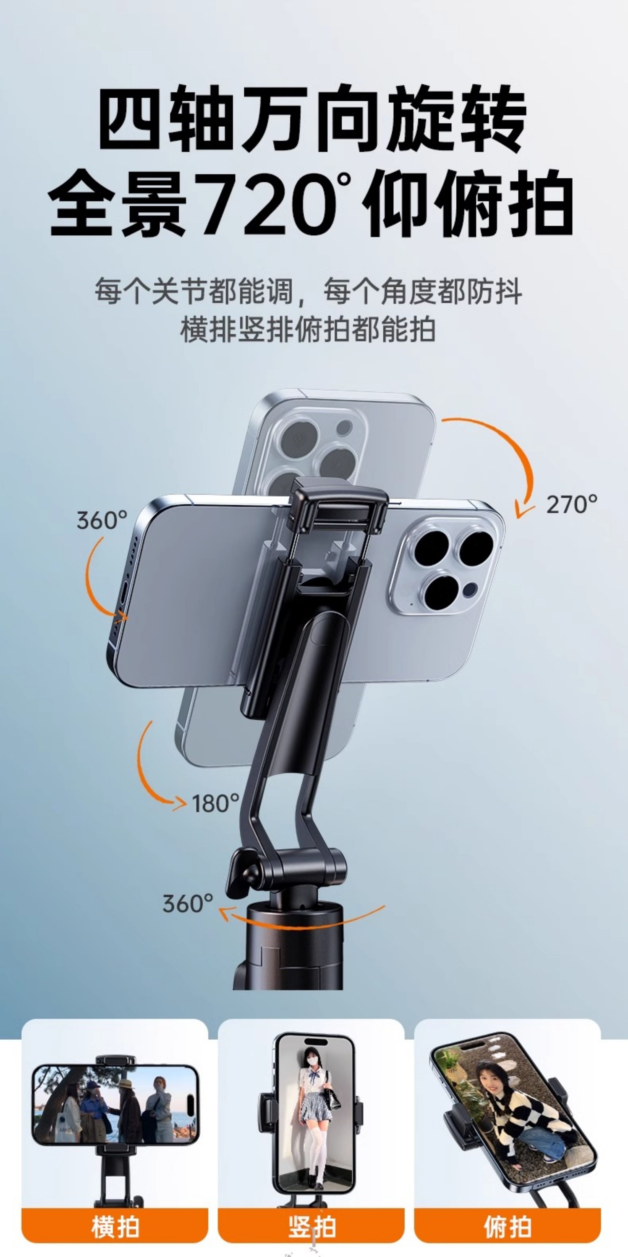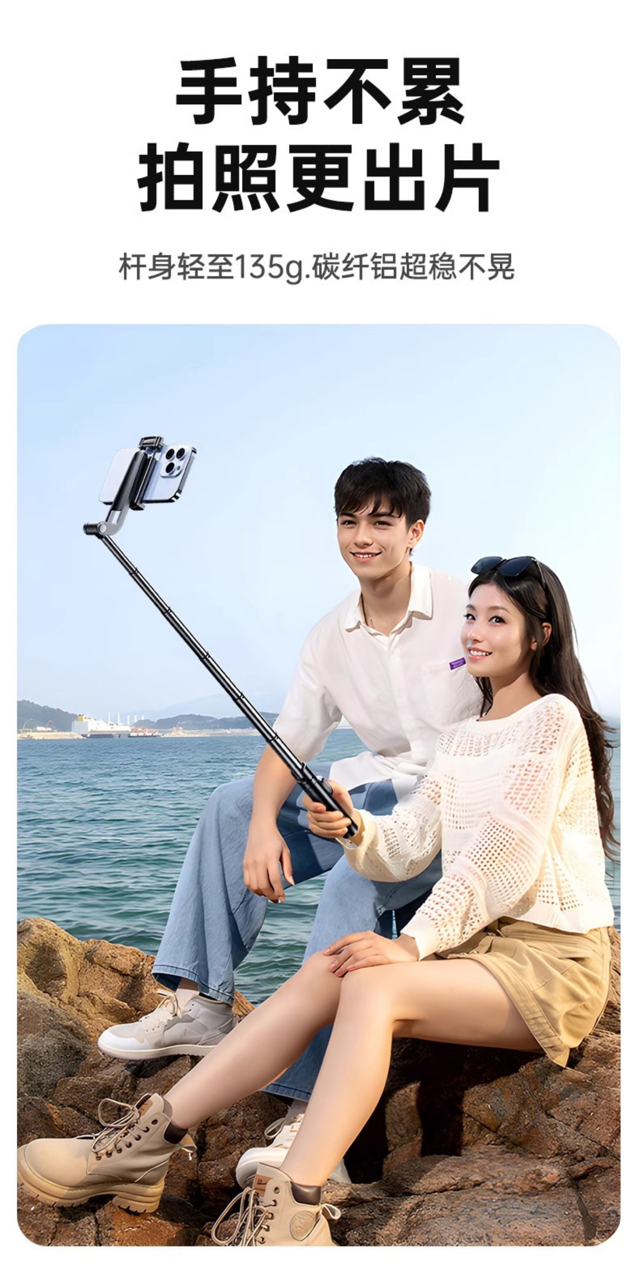 1.8m【美顔款】五軸萬向防抖◆大廣角全景拍◆碳纖鋁落地更穩